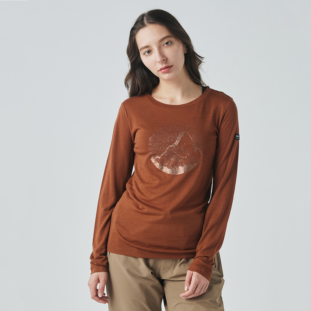 女款 羊毛塗鴉長Tee/金色山脈
