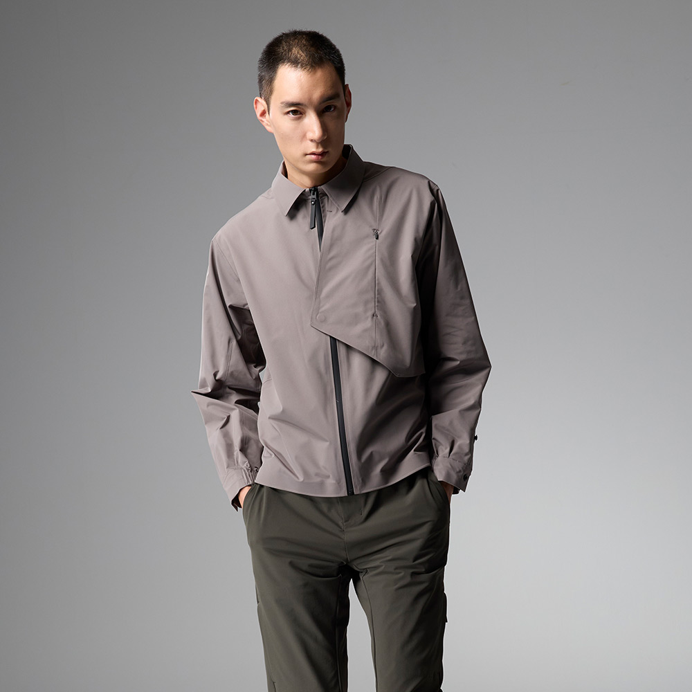 - 門襟配有無氟防水拉鍊及拉袢,胸袋隱形拉鍊設計簡潔實用。襯衫式袖口內側帶有鬆緊帶,創造立體波紋效果。